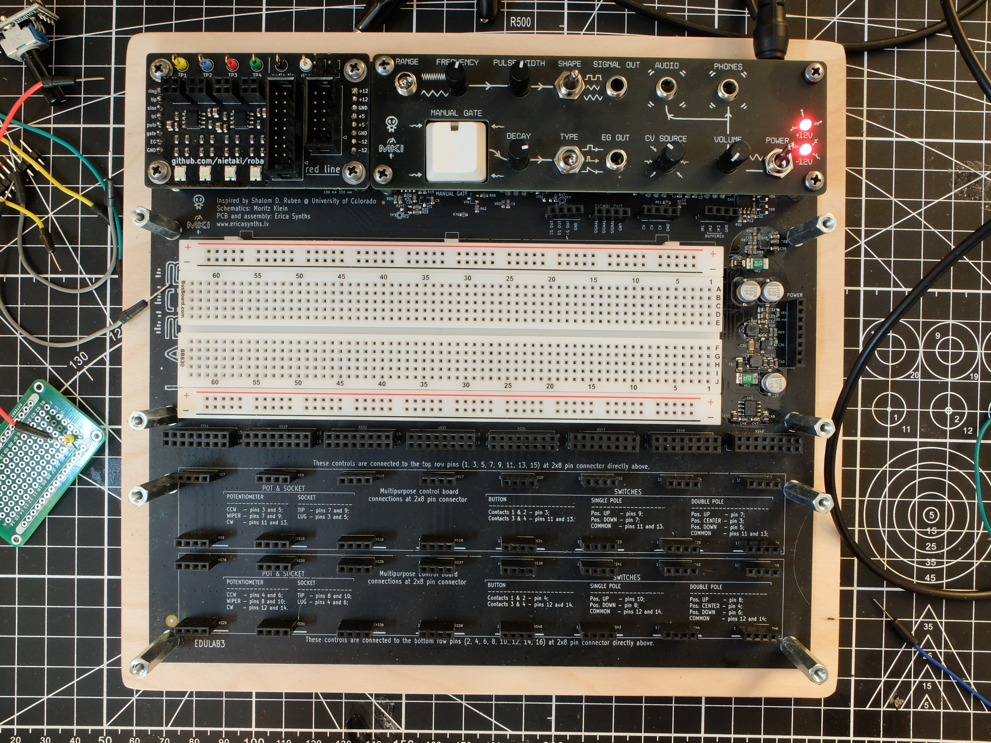 The included 16pin and 10pin IDC power connectors let you work with fully assembled eurorack modules even if you don’t have free HP in a nearby case!